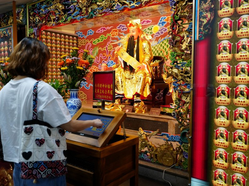 華碩於臺北市關渡宮藥師殿導入「靈光e現」智慧點燈系統,盼民眾能以更便利、貼心的方式,為家中長輩增福延壽。(華碩提供)